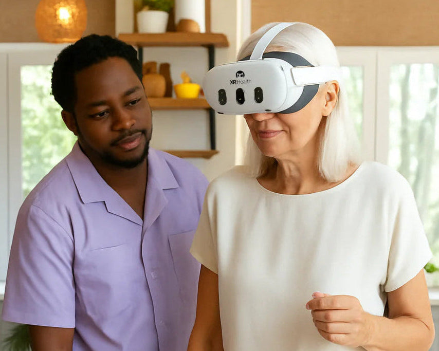 Once you receive the headset, you’ll have a virtual onboarding session with a licensed clinician who will guide you through setup and create a personalized therapy plan. From there, you’ll start your sessions from home, with ongoing support and progress tracking throughout your journey.